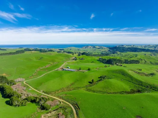 Ziwotto Farms Ltd is a 1,280 ha privately owned sheep and beef breeding and finishing farm between Port Waikato and Raglan. The property, Kokonga, features 160 ha of native bush, rolling to steeper hill country, and outstanding coastal views. Running around 3,500 Romney ewes and 1,000 Angus cattle, the farm is efficiently managed with modern infrastructure, including two woolsheds and new yards due in 2026. With ongoing reinvestment and a focus on trophy-farm standards, Kokonga operates to a high level of tidiness and efficiency.